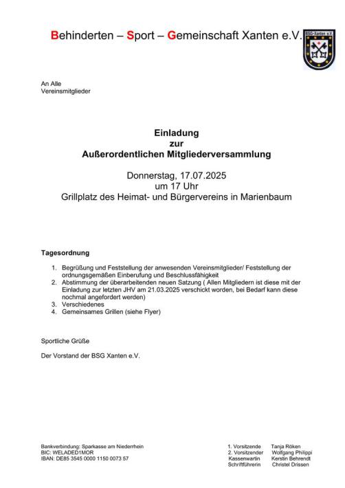 Zur Jahreshauptversammlung hatte die BSG Xanten am Freitag, den 21. März 2025 eingeladen.