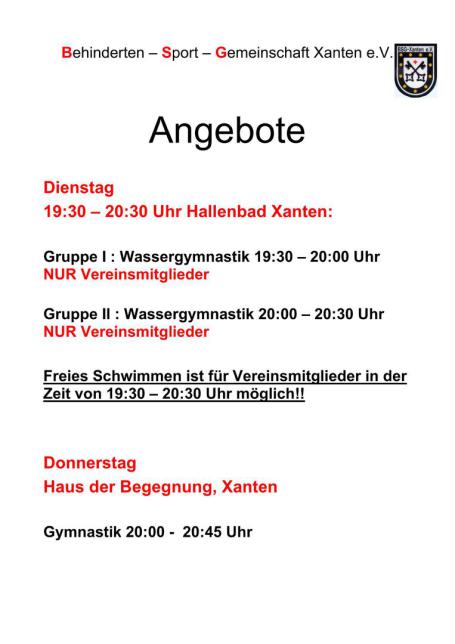 findet unser Angebot im Hallenbad Xanten wieder statt.
