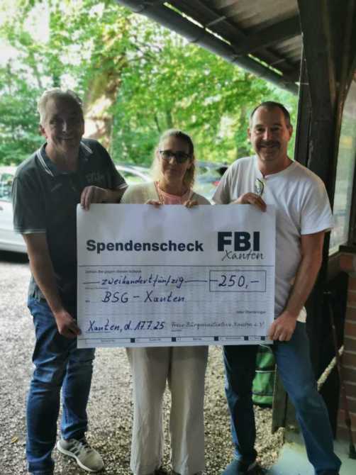 Ein besonderer Moment war die Übergabe eines Spendenschecks in Höhe von 250,00 € durch die Freie Bürgerinitiative Xanten (FBI) an den Vereinsvorstand.